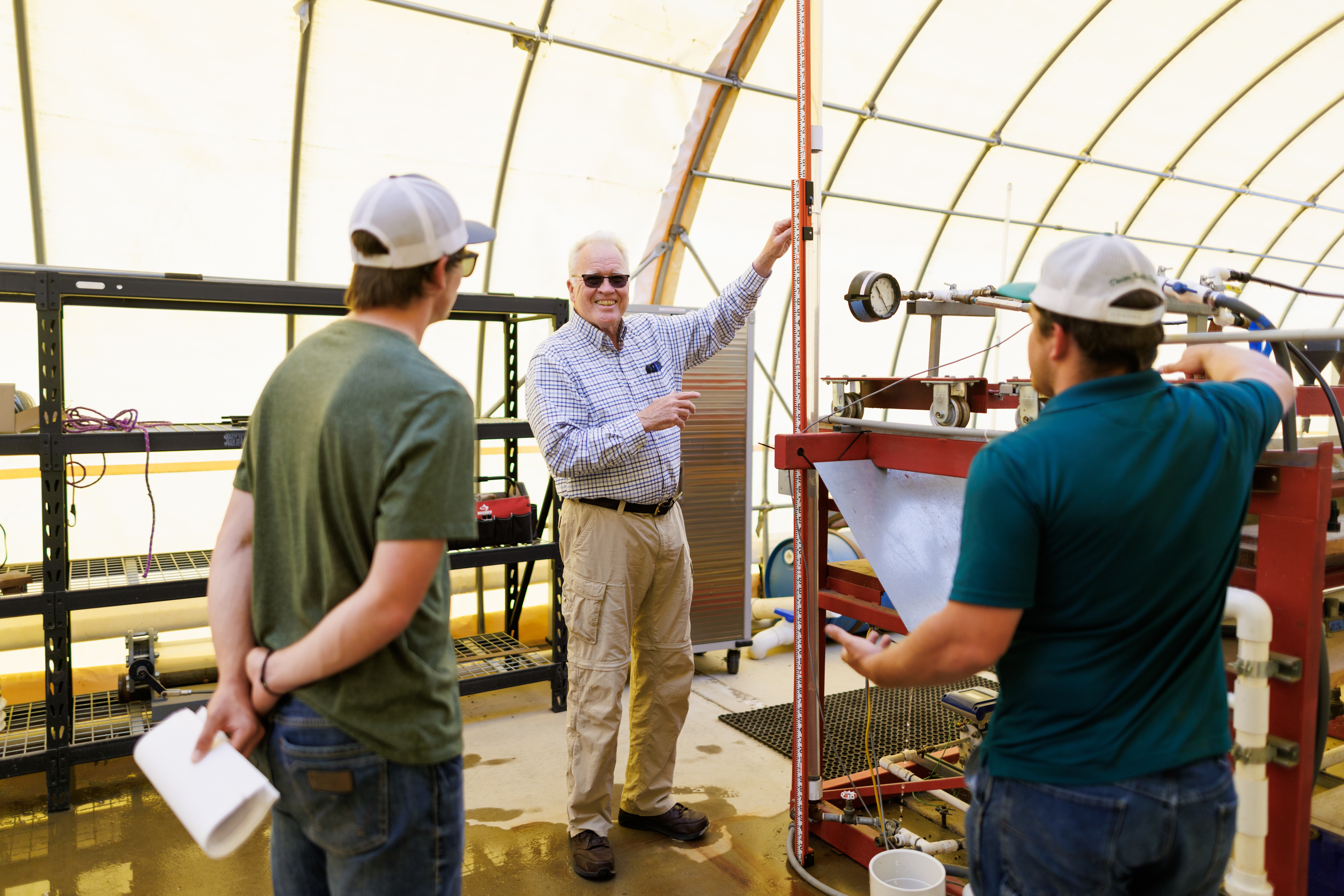 Lisa Tenbrink and Chris Hinds evaluating a drip systemRobin Gamble and Todd Weddle with Dr. Burt near